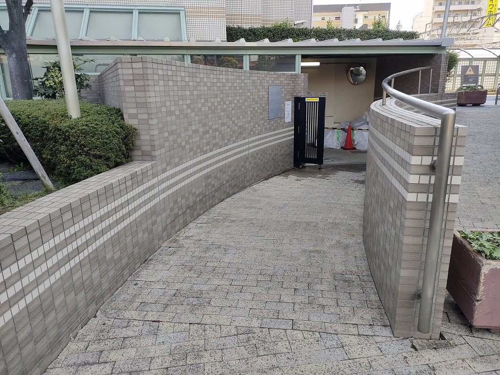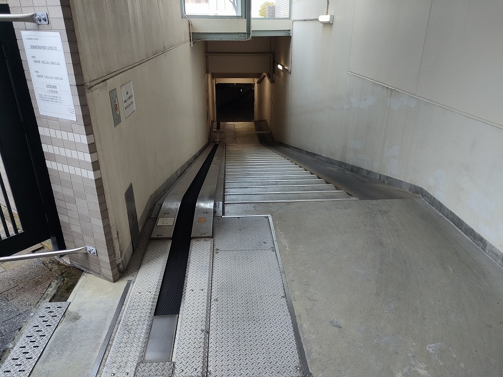エントランス前に居住者用駐輪場へ向かう専用の通路があります。地下スペースへの格納となりますが、ベルトコンベアがありますので移動は楽ですね。
