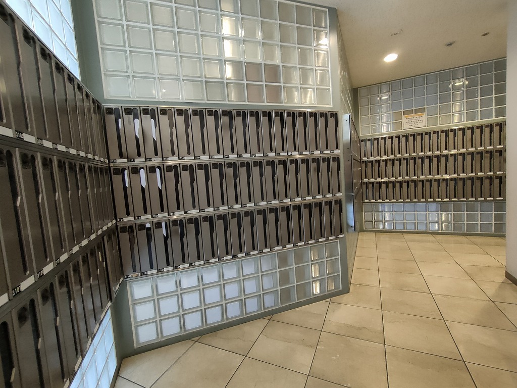 集合ポストは全世帯、251戸分が通路に沿って連なるように設置されています。