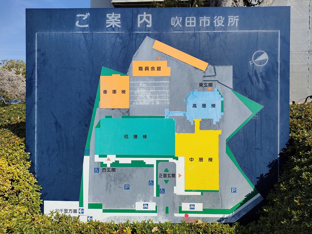 吹田市役所は先のメイシアターに道路を挟んで隣接しています。引っ越してきた後は何かと手続がありますので、場所が近いのは有り難いですね。阪急の吹田駅には、こういった公共施設が集約されている印象を受けます。