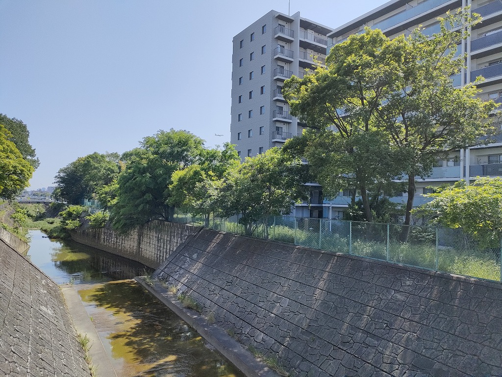 物件は川を渡ってすぐ(右の建物)。