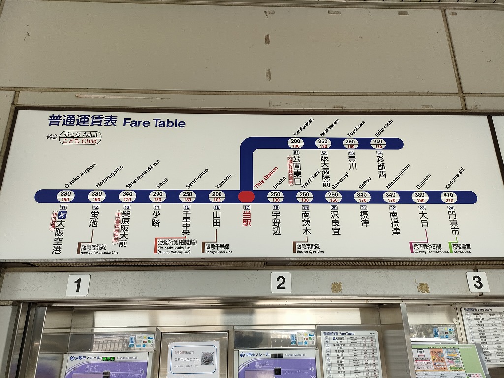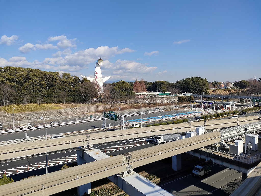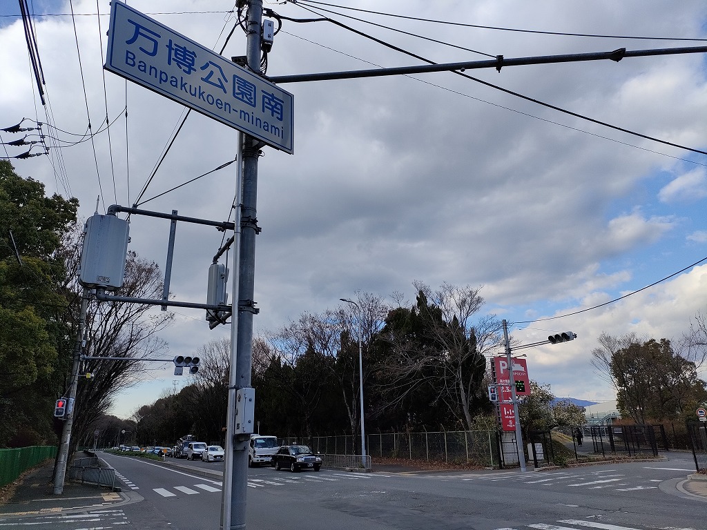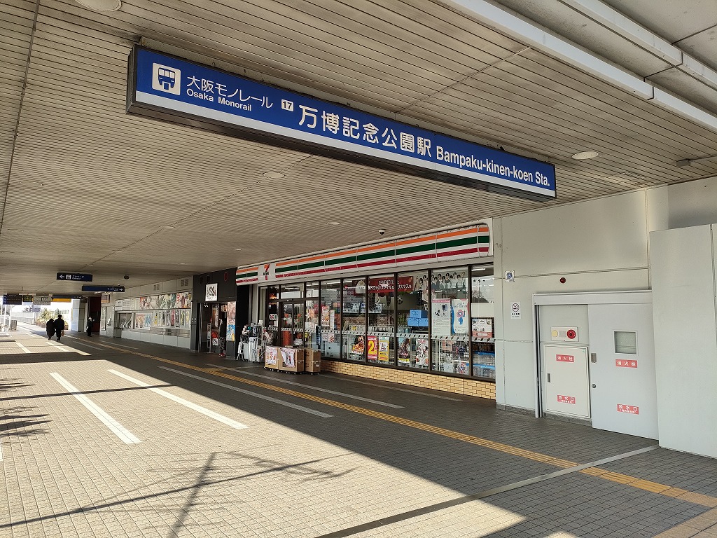 最寄駅は大阪モノレール線、万博記念公園駅となります。出入口改札は一つ、マンションに向かうルートとしては2つありますが、記事ではエキスポシティを経由する東周りルートを辿ってみます。