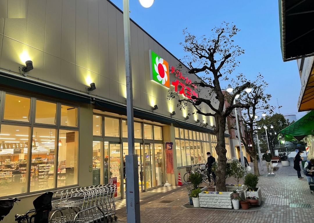 マンションから最も近いのはコチラのスーパー、イズミヤ山田西店ですね。徒歩11分とまずまずの距離。