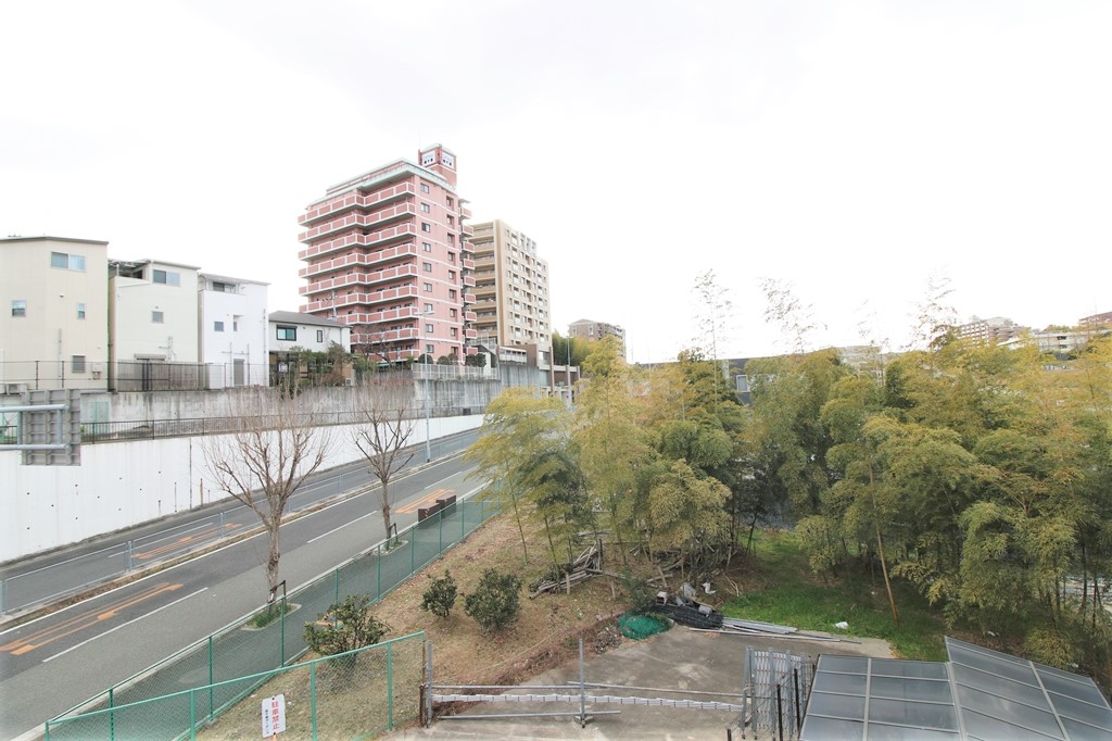 メインバルコニーからの眺め(西向き)。直近に高層建築物が無く、3階でも眺望は良好です。この解放感は写真では中々伝わらない部分ですので、ぜひ内見をご検討下さい。