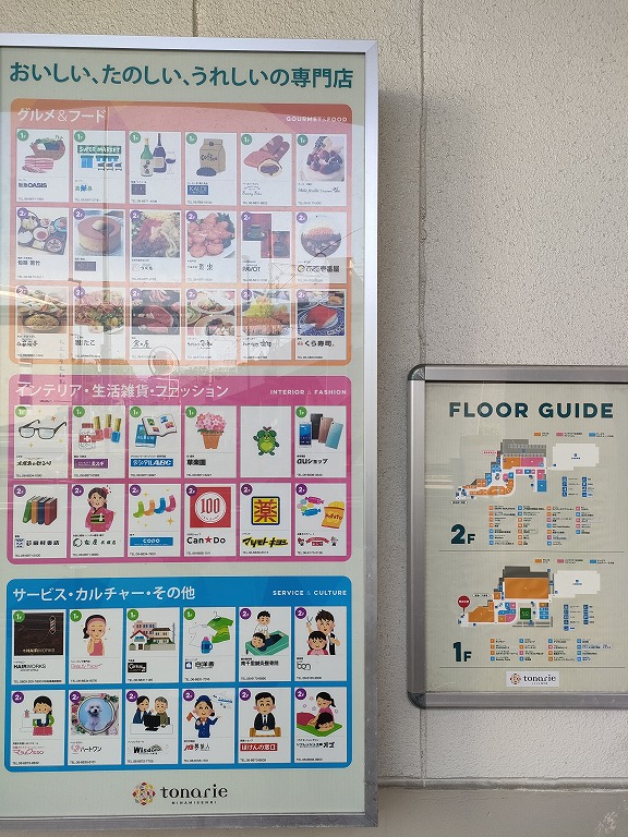 駅に隣接する形で、トナリエという複合商業施設があります。写真の通り色々なジャンルのショップが入っており、大抵のお買い物はここで済ませることが出来ますよ。