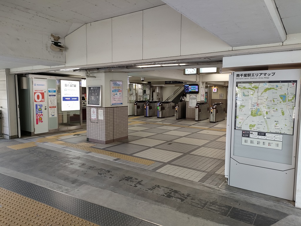 続いて、最寄りとなる南千里駅の様子を見てみます。南千里は阪急千里線の駅で、梅田までは乗り換えなしの10駅、所要時間20分強と悪くありません。なお、阪急千里線は各駅間の間隔が短いためか、普通電車以外の設定はありません。