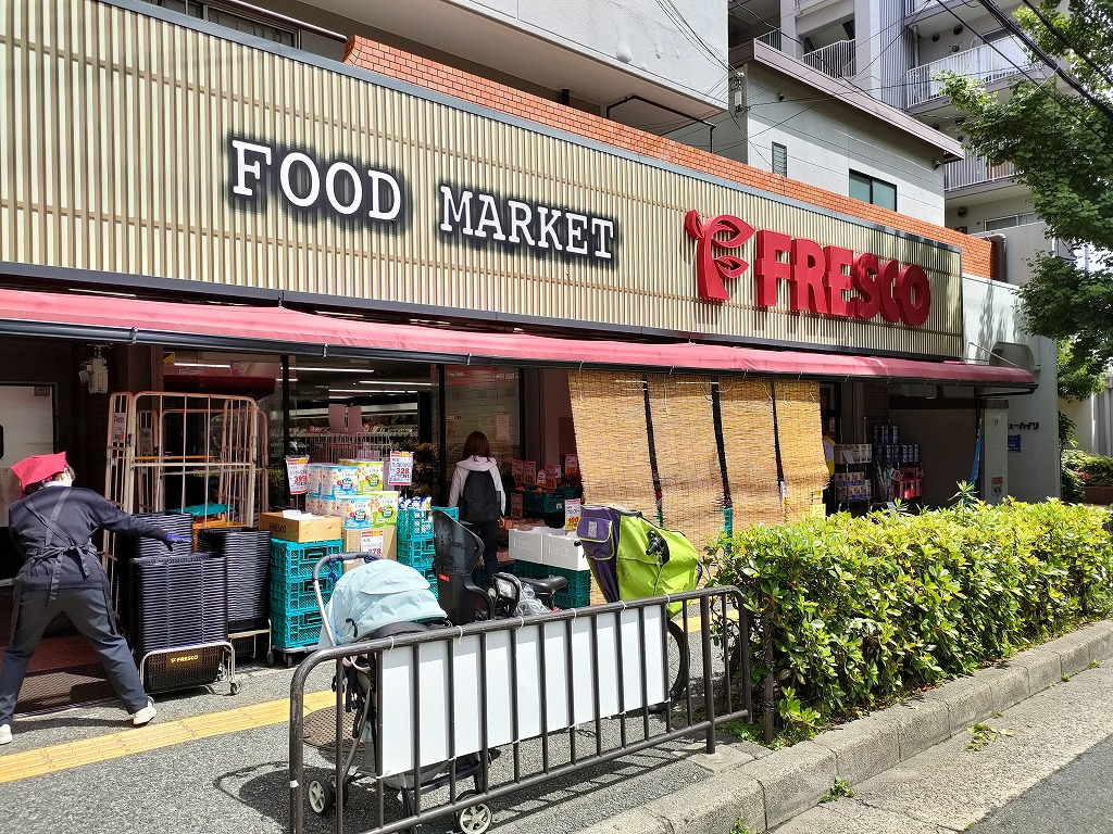 日常のお買い物については、帰宅道の途中にあるこのフレスコが最も便利。駅の東側には阪急オアシスがあり、品揃えはそちらに分がありますので、そこは上手に使い分けされるのが良いでしょう。