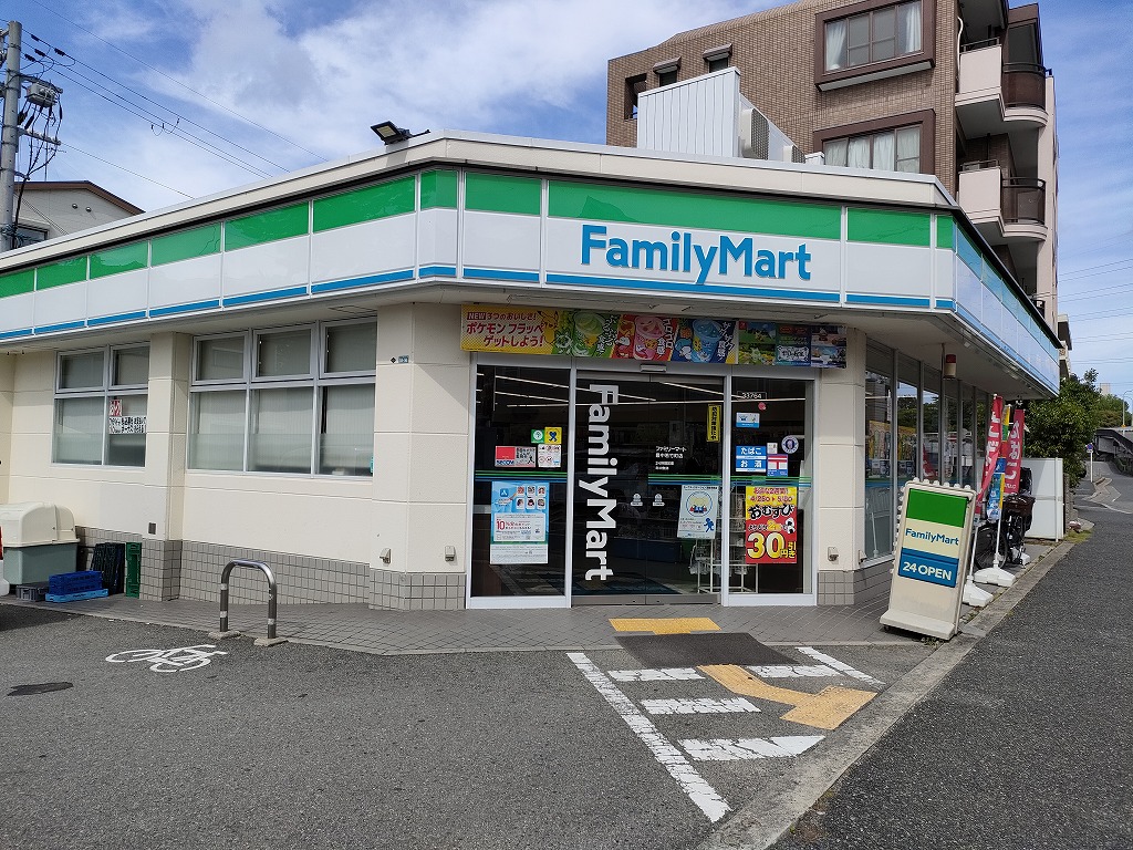 その向かいにはファミリーマートがあり、こちらがマンションからは最も近いコンビニエンスストアとなります。