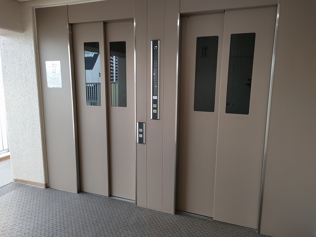 その規模の大きさ故、日商岩井緑地公園マンションにはエントランスが二箇所にあります。行き先によって便利に使い分けられるのが利点。エレベーターも各エントランス付近に二基ずつあり、朝の混雑緩和に対する考慮が感じられます。