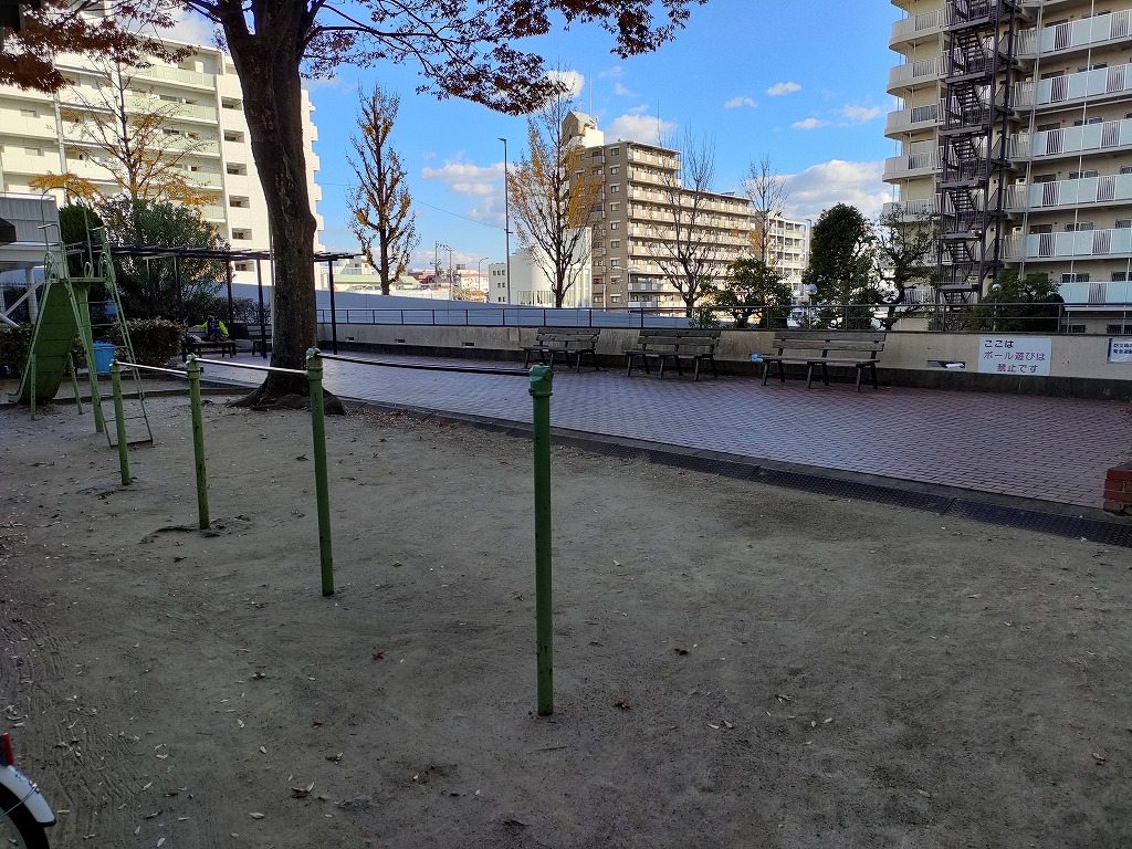 敷地内には居住者専用の広場もあります。午後は写真の通り日が陰りますが、夏場のお子さまの遊び場としては危険が少なく、むしろ好印象です。