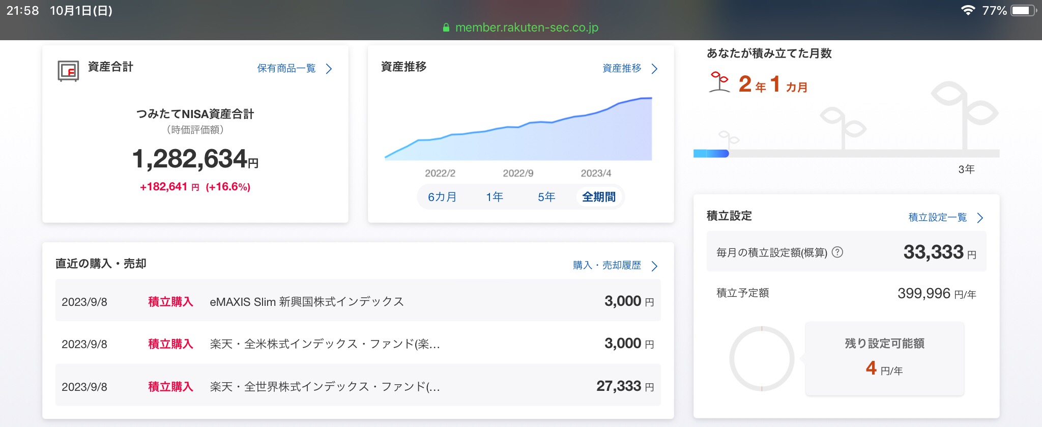 それでは 2023年9月末日 時点の運用実績、行ってみましょう。
