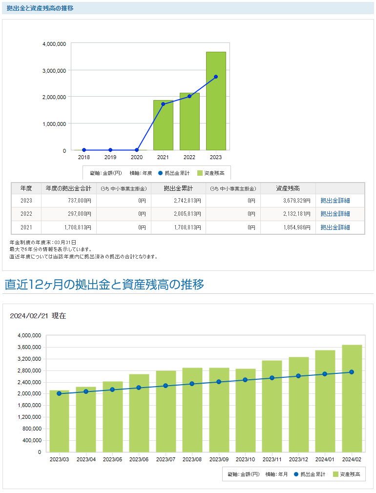 ■線グラフは拠出金総額。拠出金は毎月定額なので、月次推移上は基本的に上り幅が一定