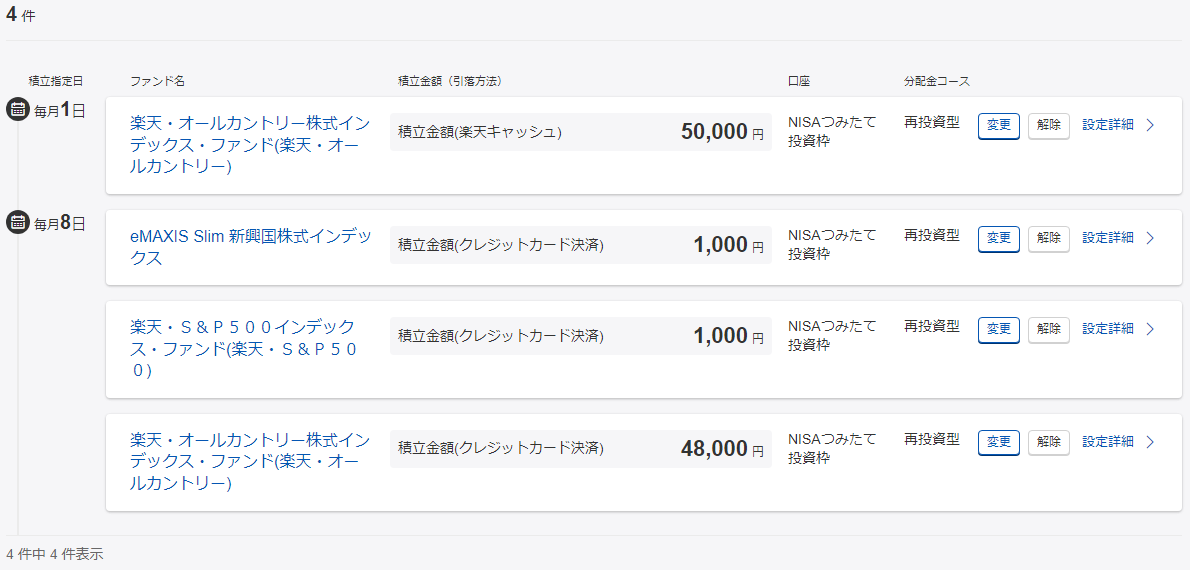 ▼引落方法ごとに毎月1日と8日、2回に分けて10万円分を買い付ける設定