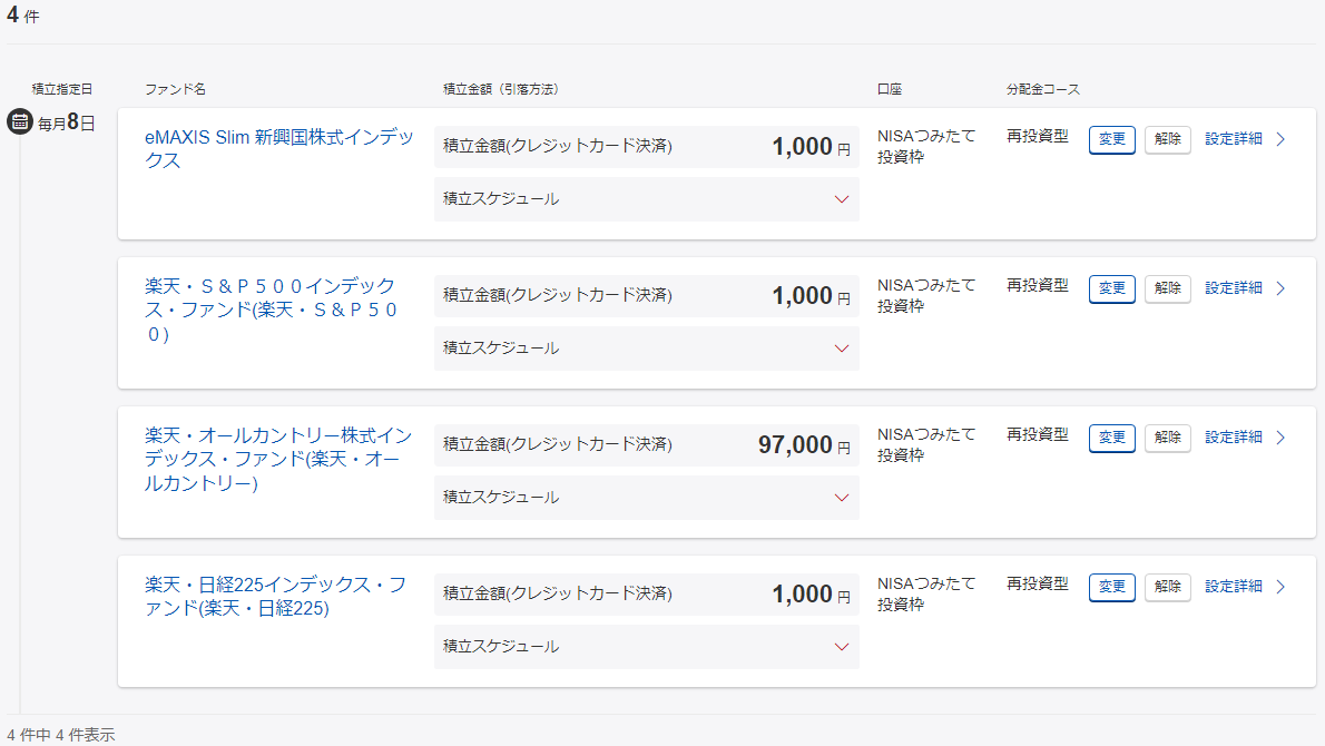 ▼毎月8日、クレジットカード決済のみで10万円分を一気に買い付ける設定にて積み立てを継続中