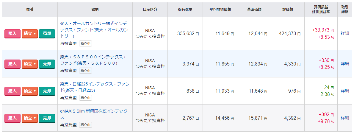 ※あくまでメインの買付は全世界株インデックス連動型。当面は方針の再考を迫られる世界情勢の変化なども生じないであろうとタカを括っている
