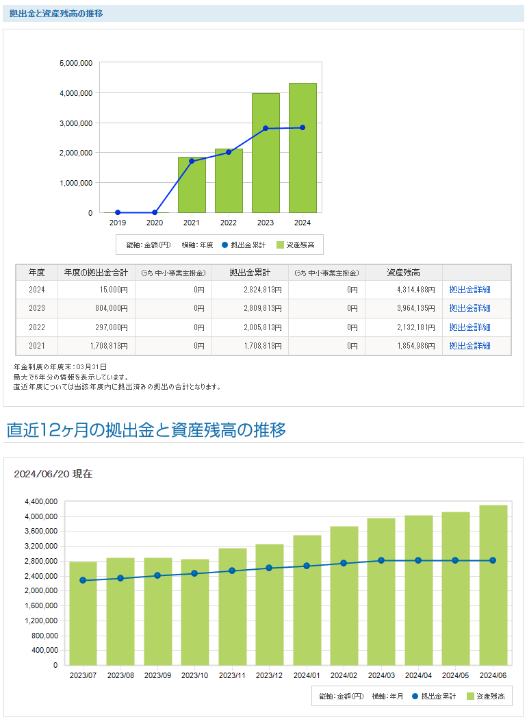 ※今年度の拠出金は 5,000円/月 と少ないので、グラフのスケールでは増加がほぼ分からない