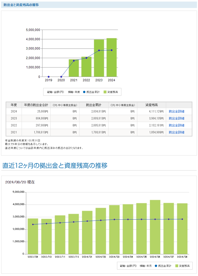 ※今年度の拠出金は 5,000円/月 と少ないので、グラフのスケールでは増加がほぼ分からない