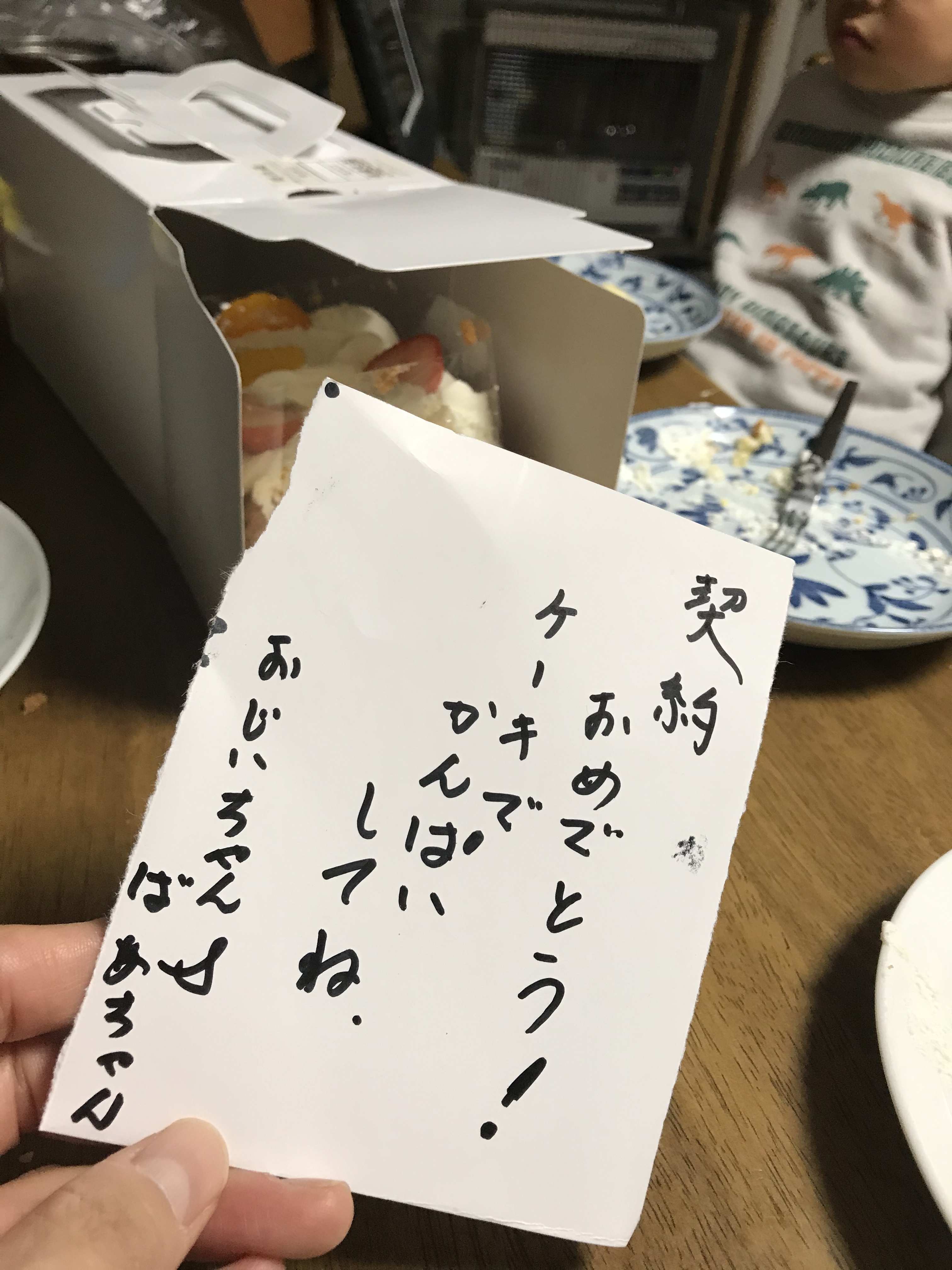 帰宅すると、両親から「契約おめでとう㊗️」とお手紙とケーキが🍰置いてありました🍰✨嬉しい😆