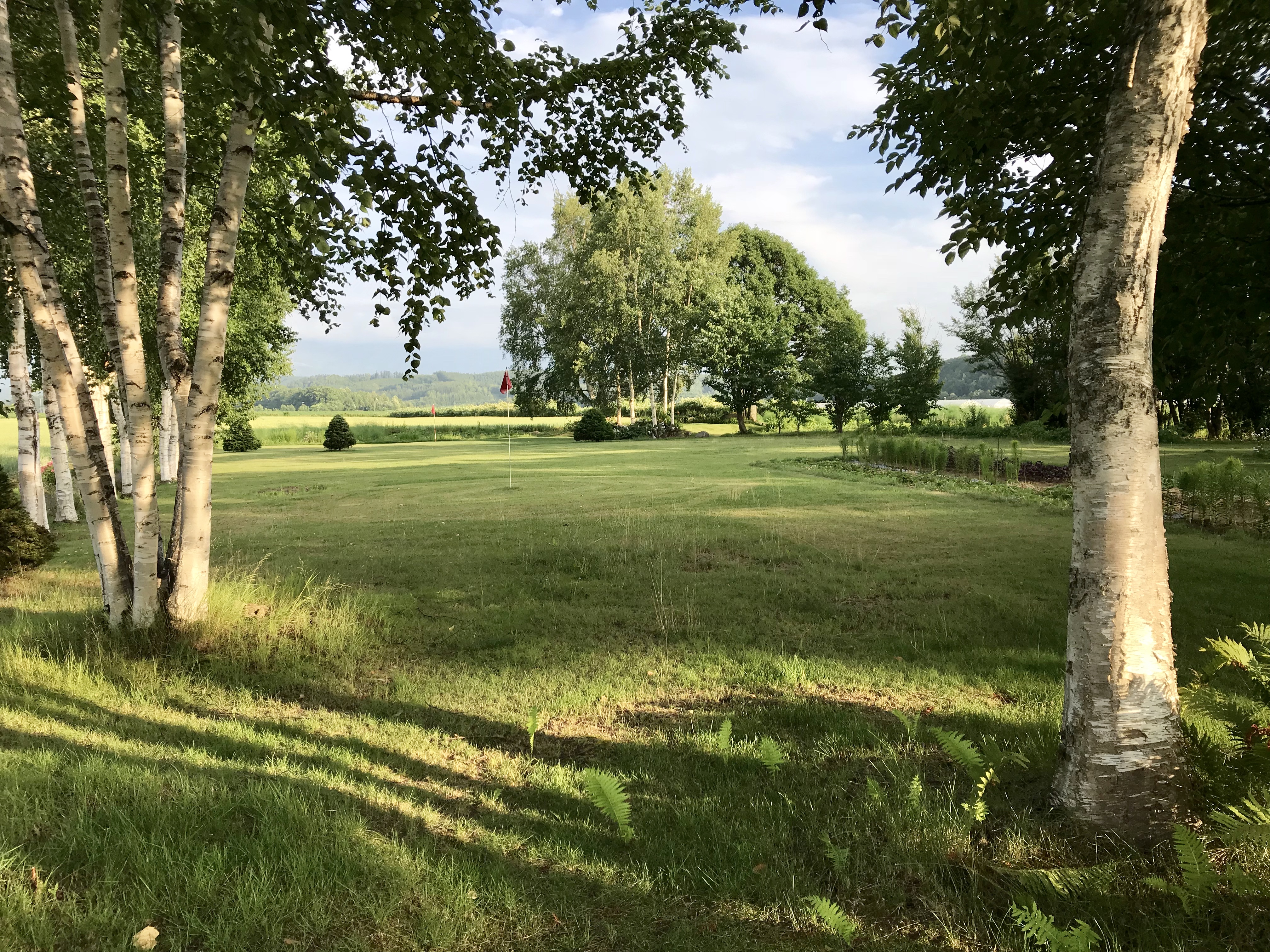 敷地はとても広くて約5600㎡(1700坪)。ゴルフ⛳️場にもなっています。友人を呼んでイベントをしたり、大勢でキャンプしたり、青空ヨガなども十分にできる広さです。白樺もいい感じに沢山植えてあります。木陰でヨガもできるしリゾート気分満載です!