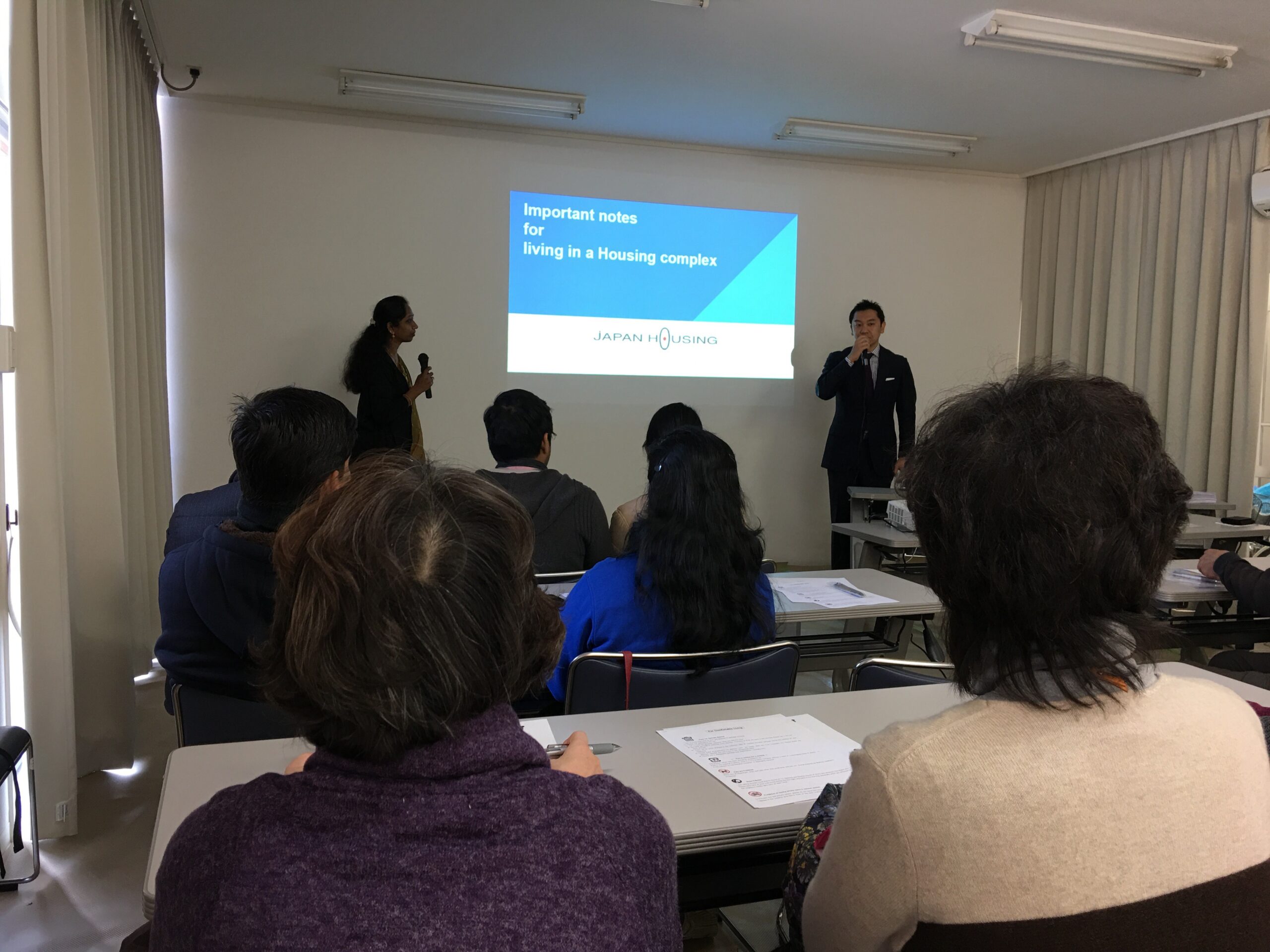 外国人がURの団地に住んだ後、文化や風習、生活スタイルの違いから、日本人と外国人の間に生じてしまう誤解を解いて、クレームにならないようにするという内容でした。