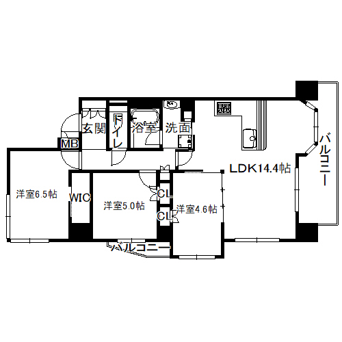 南南東向きのバルコニーからは明るい日差しが差し込みます。