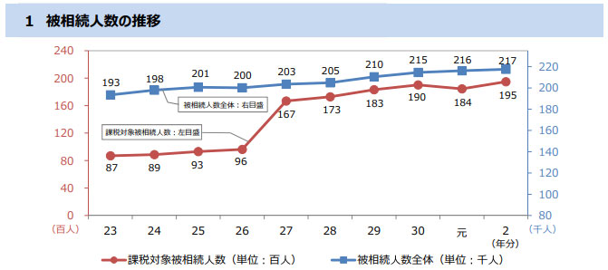 12人に1人、令和2年の数字でいうと11人に1人にまで相続税対象者が広がっています。