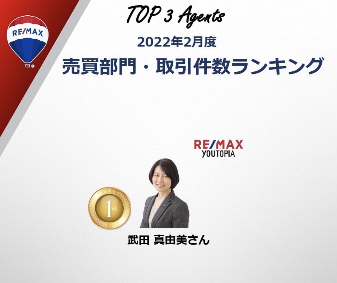 2022年2月に行われた第4回RE/MAXジャパンコンベンションでは2連覇の不動産売買売上件数日本第1位を頂きました!売上高も第4位でした^ ^