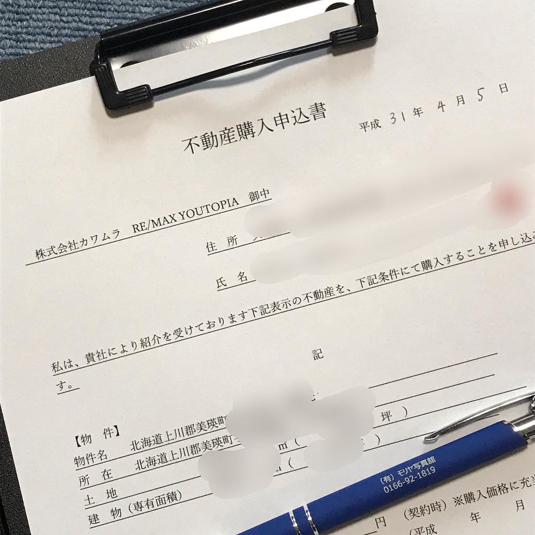 美瑛町郊外の不動産購入申込書頂きました