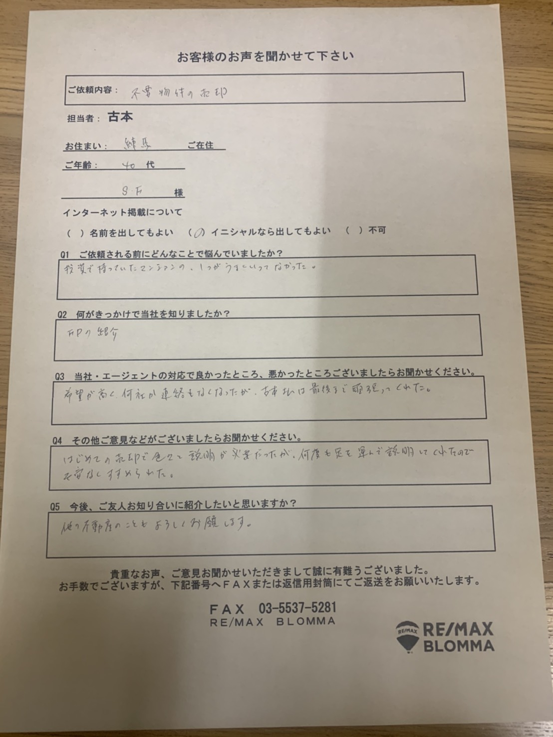 お客様からお声を頂戴しました
