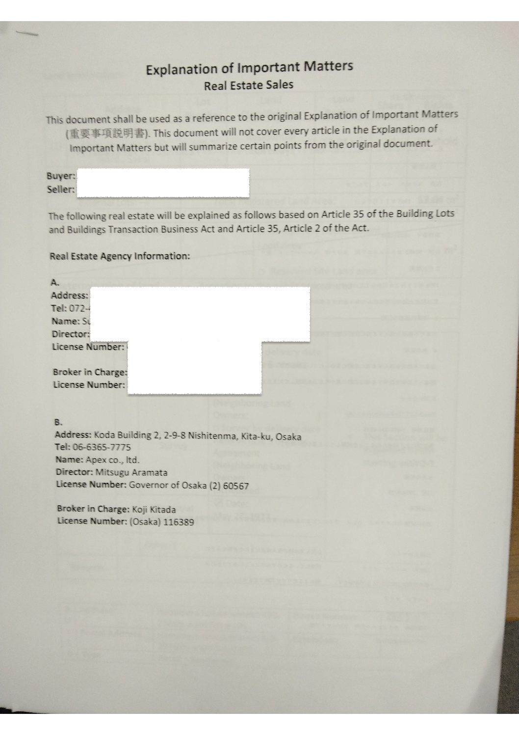 Most likely licensed estate agents are well experienced. Without some sort of experience they can't pass the bar exam of the real estate. Only licensed estate agents are qualified to explain about the property before a buyer signs the purchase agreement according to the Japanese law.