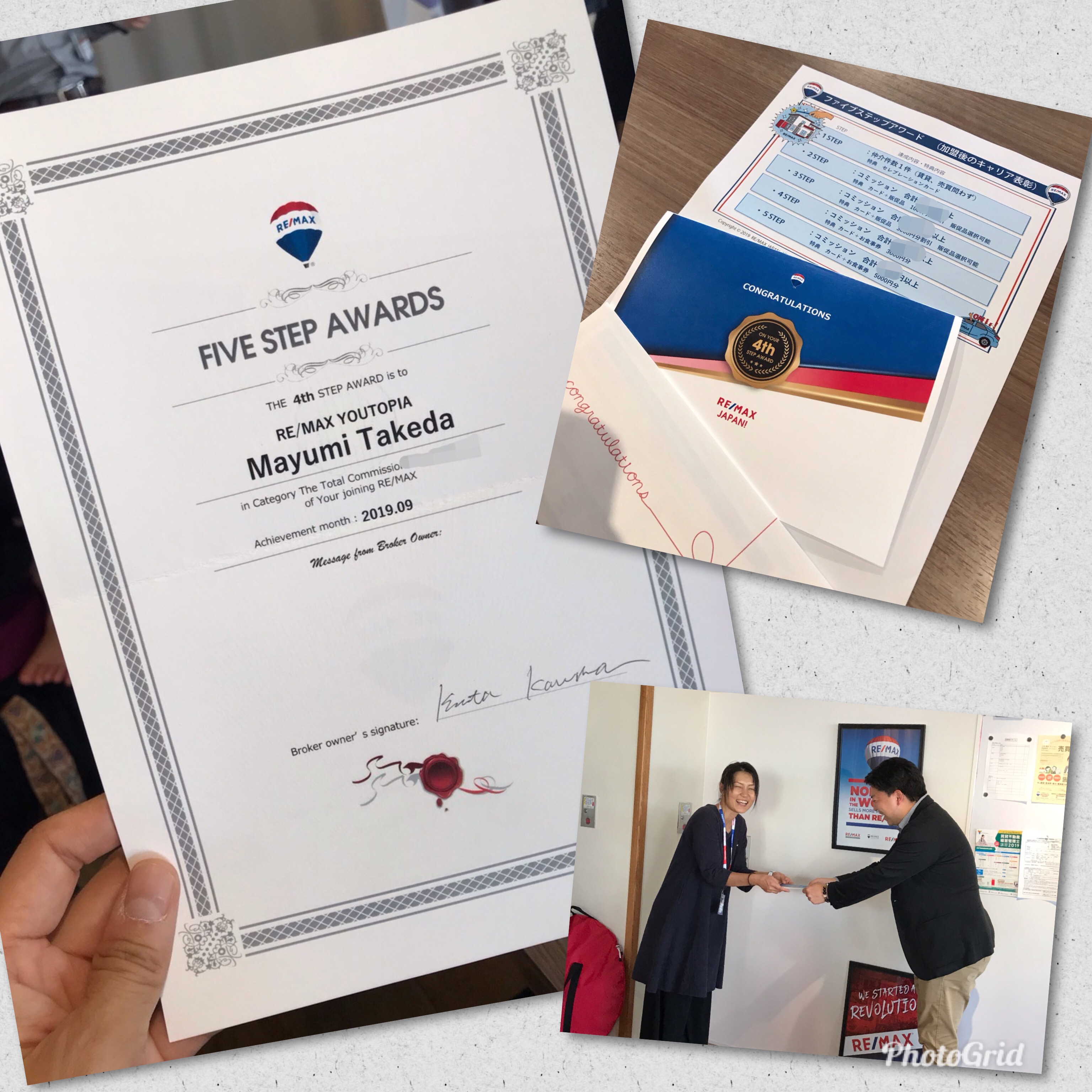 2019年9月30日、今日はRE/MAX HOKKAIDOにて FIVE STEP AWARDS 授賞式でした。この賞は2019年8月末までのコミッション累計額の合計で表彰されます。春から8月までのいくつかの成約から今回私も受賞🏆嬉しかった〜✨😊
