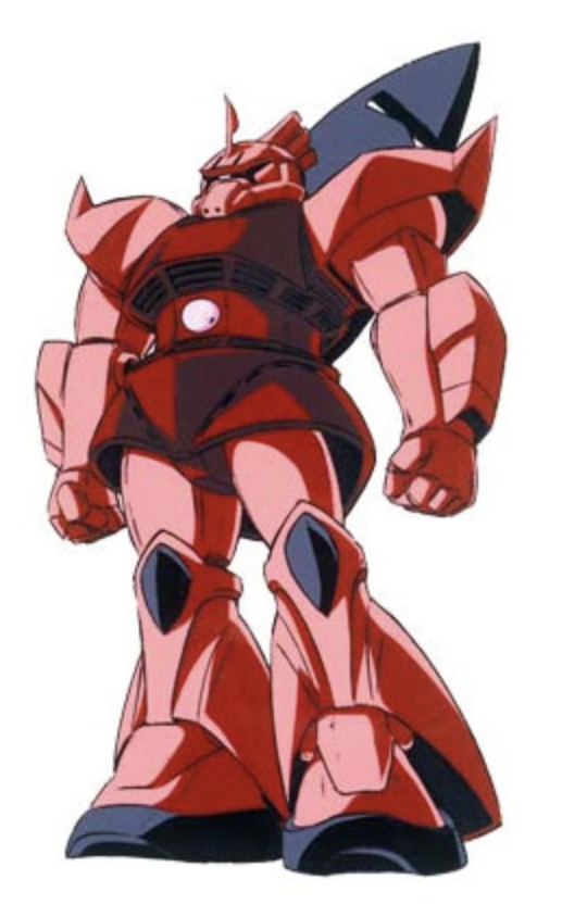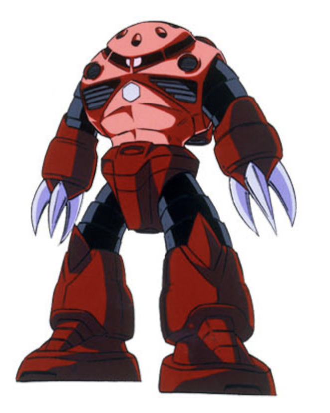 The primary his mobile suites were Char Zaku which is on the picture. As series progress he developed many char red comet mobile suits.