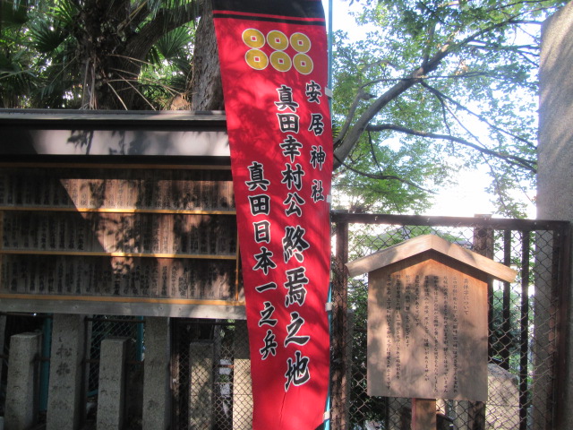 Yukimura was badly wounded and exhausted right here in this shrine. . Soldiers from the Tokugawa army quickly went to Sanada. Too tired to fight back, Yukimura allowed the men to kill him, reportedly saying, “I am Sanada Yukimura , no doubt an adversary quite worthy of you, but I am exhausted and can fight no longer. Go on, take my head as your trophy”. A man by the name of Nishio Nizaemon chopped off Sanada’s head. His grave is now located in Osaka.