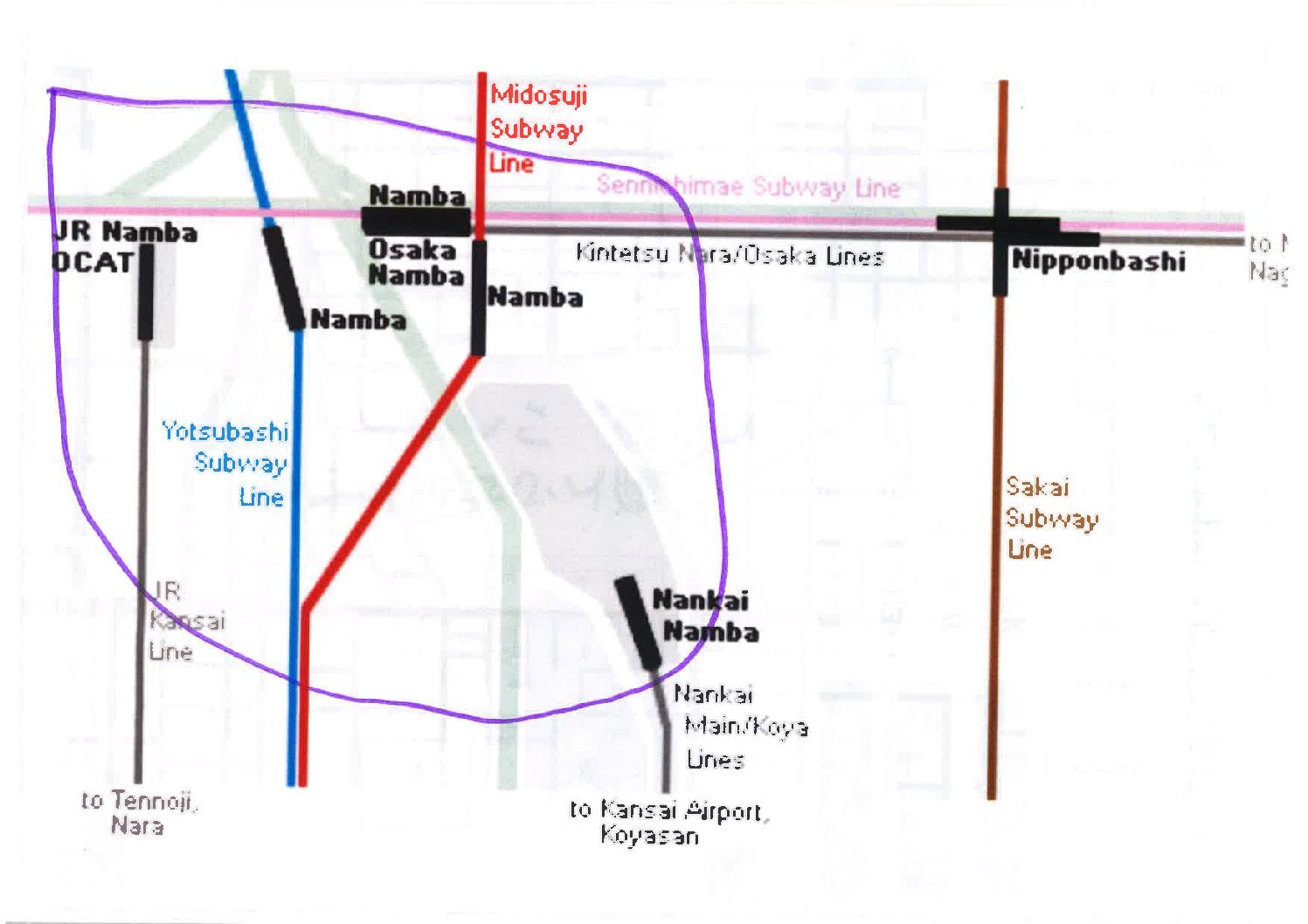 There are 3 subway stations served to Namba. The red line is a brain of Osaka. It's a financial hub, government offices are along the line. If you are thinking about purchasing or renting a property you need to spend more funds.