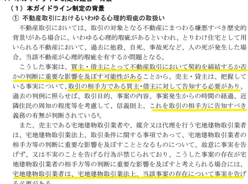 人の死に関する心理的瑕疵の取扱いに関するガイドライン