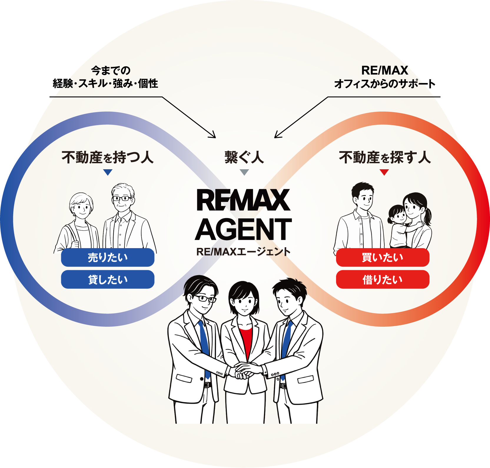 会社のフィルターを通さず、自分の意志で選ぶ。顔の見えない誰かに任せるのは終わりにしましょう。RE/MAXでは、エージェントの「顔」「生き方」「想い」をすべて公開しています。あなたの価値観に合う、信頼できるパートナーを、 あなた自身の手で指名してください。